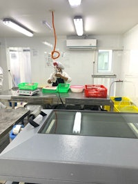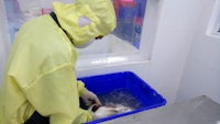 Scale the fish from receiving room and wash it with ice water below 4℃ before transfer to fillet room.